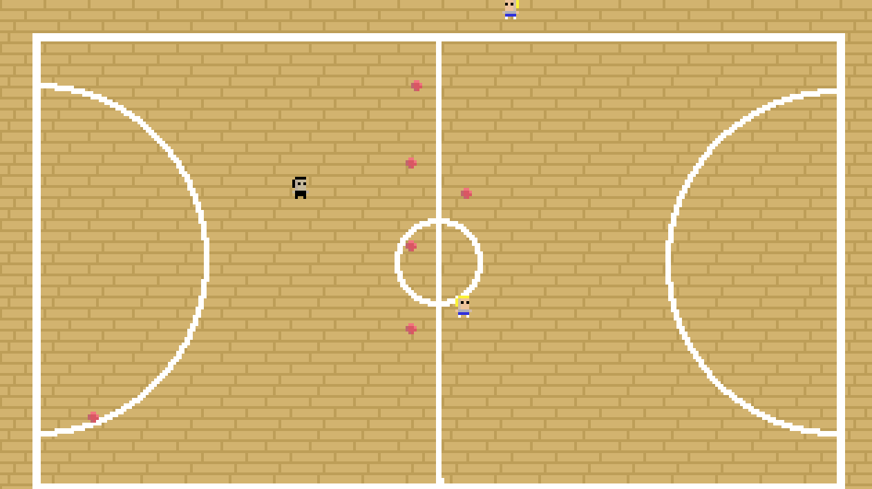 Controls: WASD, arrow keys, or gamepad to move. Space or gamepad bottom button to throw a dodgeball.